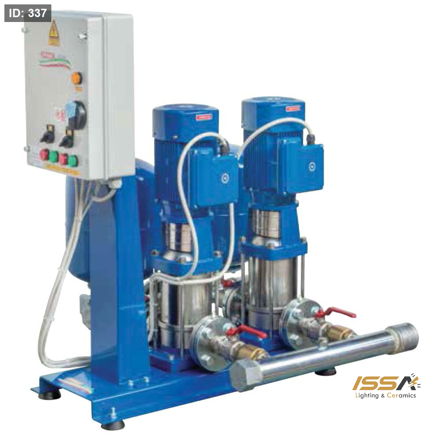 مجموعة ضغط مزودة بمضختين عموديتين متعددتي المراحل من الفولاذ المقاوم للصدأ مع قاعدة مزودة بجهاز مضاد للاهتزاز، ومشعب شفط وتسليم، وصمام كروي وصمام عدم رجوع، ومتوفر مع أو بدون الخزانين. ولها صندوق كهربائي كامل مع مفتاح عام ومفتاح حراري. ودائرة مساعدة منخفضة التوتر كاملة بمحول وقواطع حماية. إنها مناسبة لإمداد المياه من الآبار ولزيادة الضغط في أنظمة المياه.
